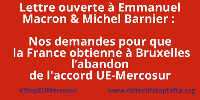 Accord UE-Mercosur : Lettre ouverte à Emmanuel Macron et Michel Barnier
