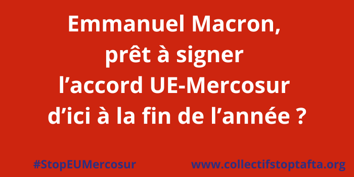- l’exécutif français à pleinement se mobiliser en constituant une minorité de blocage au sein de l’UE pour que cet accord nocif ne soit pas ratifié.