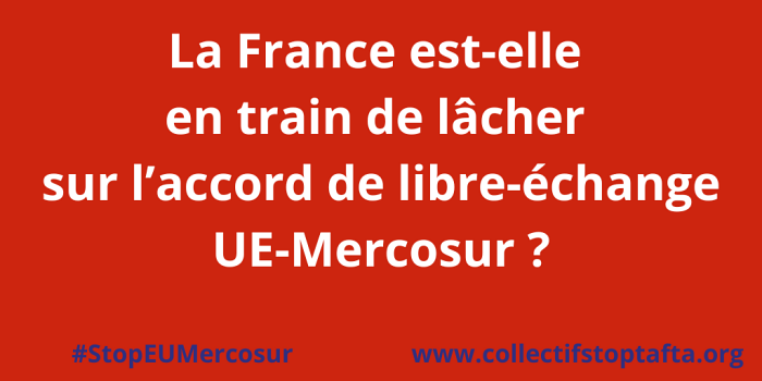 Depuis que Donald Trump a déclenché son augmentation des droits de douane, les prises de parole publique de l’exécutif français deviennent moins franches et perdent en clarté : la France serait-elle en train de changer de position sur l’accord de libre-échange entre l’Union européenne et les pays du Mercosur ? La Commission européenne et plusieurs capitales européennes l’y poussent et l’opposition française à l’accord semble se lézarder. Le collectif national Stop Mercosur rappelle que l’accord UE-Mercosur n’est pas la réponse à la guerre commerciale de D. Trump.
