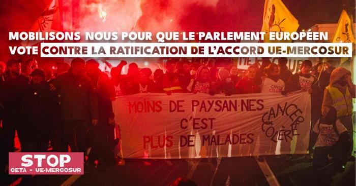 Ratification de l’accord UE-Mercosur - ce n’est pas fini - Mobilisons-nous pour que le Parlement européen vote CONTRE sa ratification !