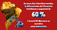 Après plus de 20 ans de négociations, l’Union européenne et le Mercosur (Argentine, Brésil, Paraguay, Uruguay) sont parvenus en 2019 à un accord politique sur un traité de libre-échange, qui est maintenant en phase de finalisation. S’il est ratifié, il deviendra l’un des plus importants accords commerciaux au monde. Cependant, cet accord favorable aux multinationales stimulerait le commerce de produits nocifs entre les deux régions, en supprimant la plupart des droits de douane sur les biens. Cela aurait des conséquences désastreuses pour l’environnement, les droits du travail et plus largement les droits humains.