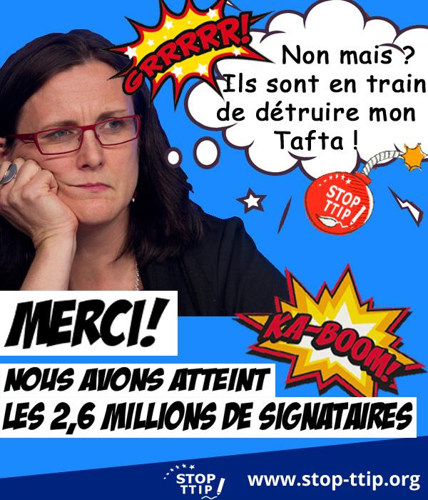 L’initiative citoyenne européenne Stop TAFTA et CETA a aujourd’hui atteint les 2,6 millions de signatures !