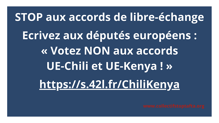 Ecrivez aux députés européens : « Votez NON aux accords UE-Chili et UE-Kenya ! »