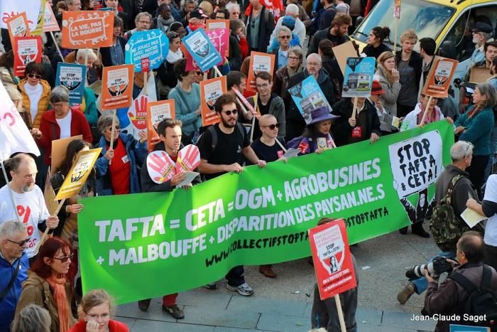 Nicolas Roux, des Amis de la Terre, poursuit : « L’ensemble du processus d’élaboration et d’approbation du traité a été une farce : négociation dans la plus grande opacité, intoxication massive sur le contenu du traité, réécriture du chapitre Investissement pour désamorcer la critique, ajout à la dernière minute d’une déclaration interprétative sans la moindre consistance... Le traité, finalisé depuis deux ans, n’en finit pas de soulever oppositions et controverses. Aux côtés d’experts internationaux en droit et en économie et de personnalités politiques de tous bords, des millions de personnes ont alerté leurs gouvernements européens et canadien sur les risques qu’il comporte. Au lieu de reporter une décision qui déplaît aux promoteurs du CETA, il est temps de prendre acte du fait que ce traité est un échec, et d’y mettre fin. »