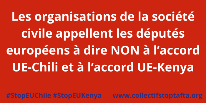 Les organisations de la société civile appellent les députés européens à voter NON à l’accord UE-Chili et à l’accord UE-Kenya