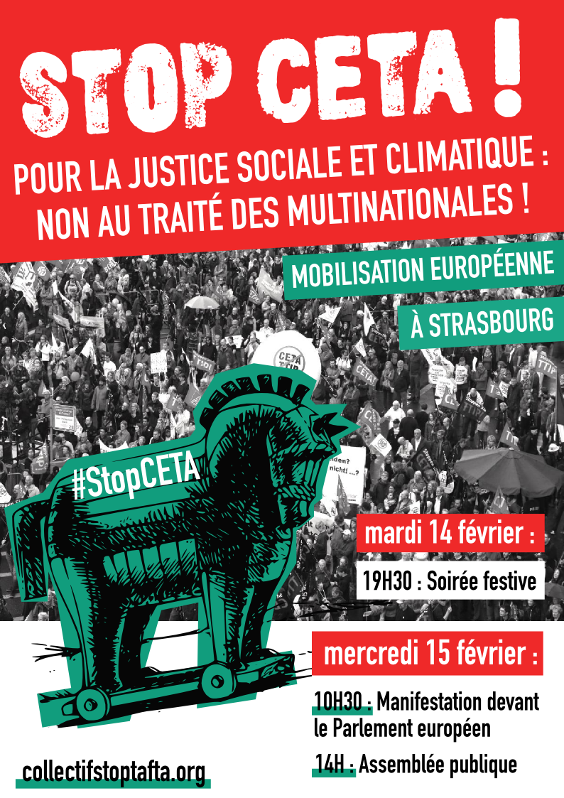 Pour se mobiliser contre le CETA, nous organisons des bus pour Strasbourg au moment du vote du traité.