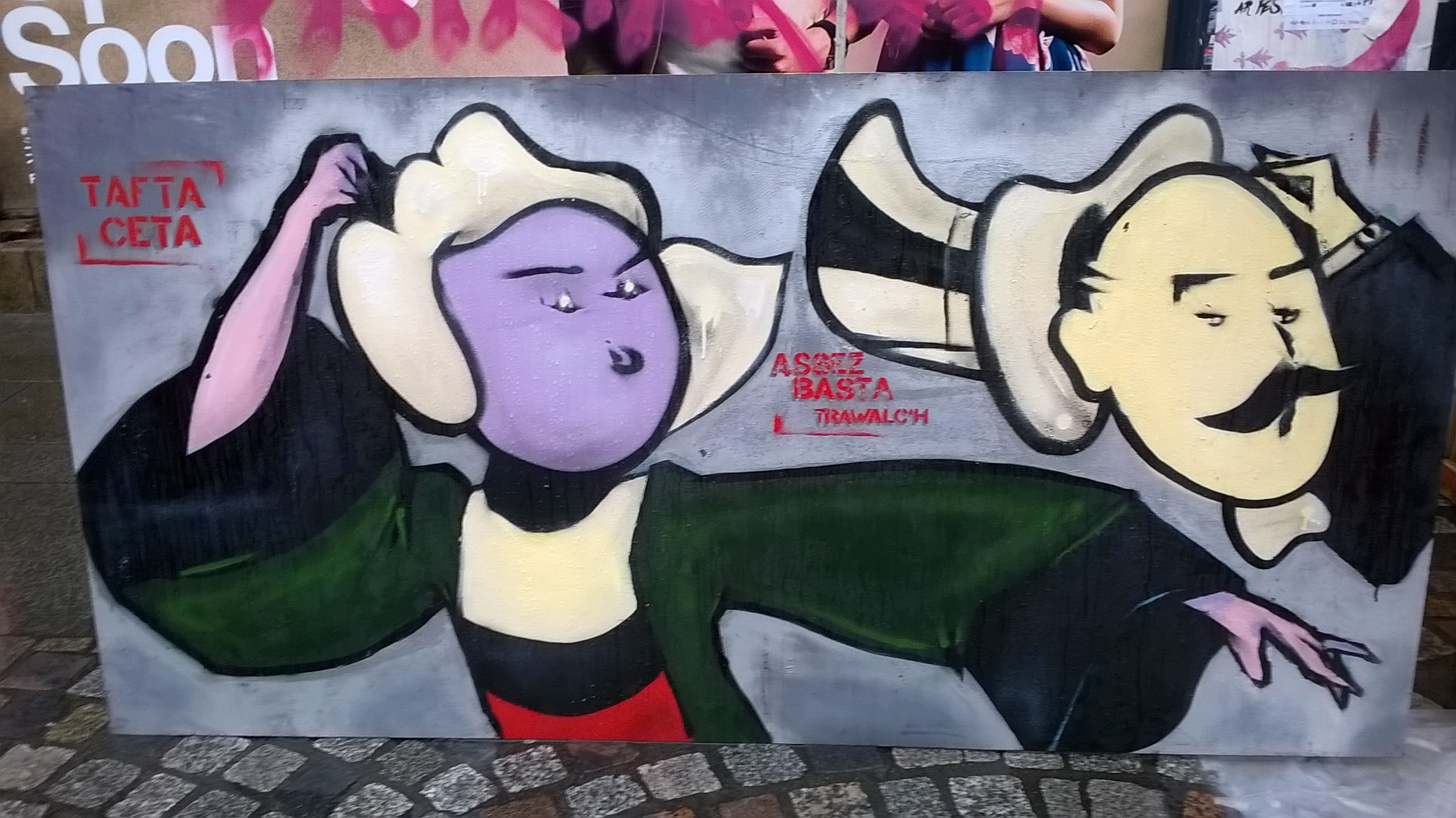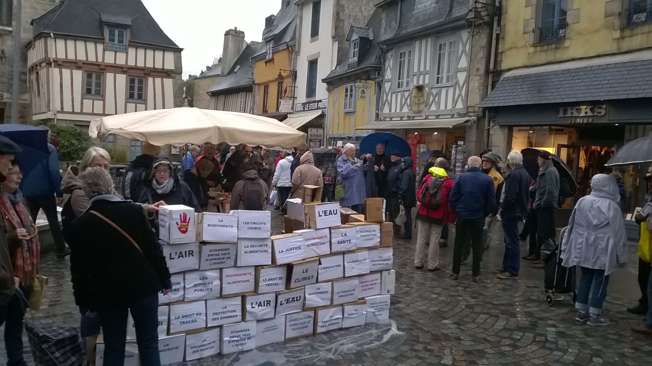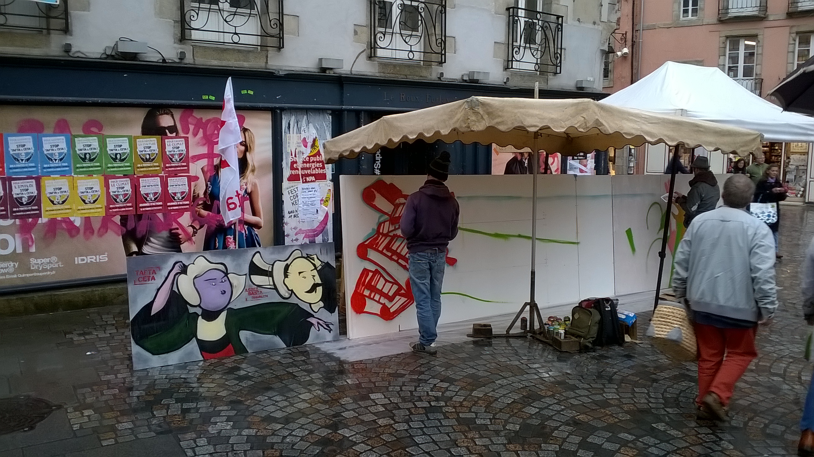 - à Quimper : sous une pluie battante, 200 citoyen.ne.s se sont retrouvés place Terre aux Ducs et ont notamment réalisé une grande fresque anti-CETA