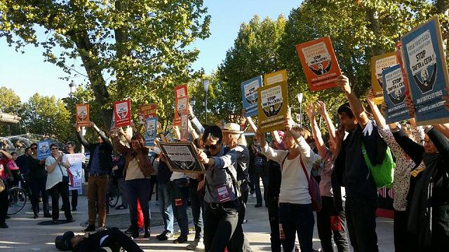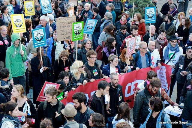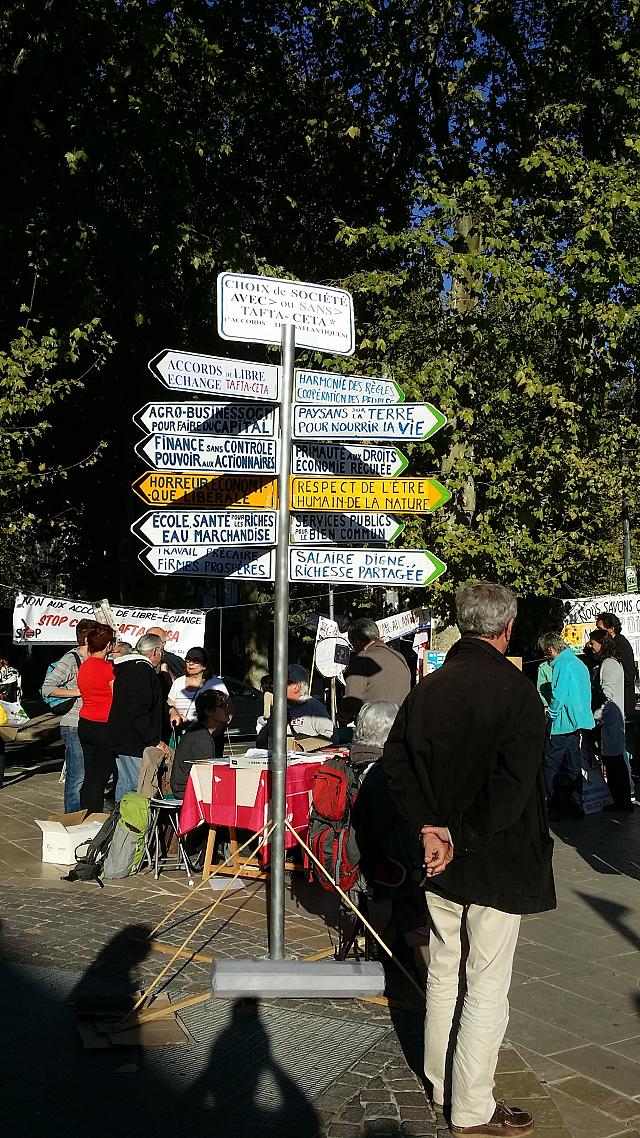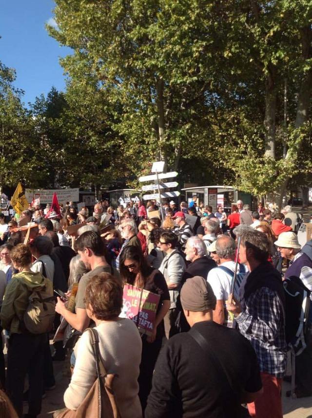 - à Aix-en-Provence : ils étaient plusieurs centaines à s’être donnés rendez-vous aux « Allées Provençales » pour la tenue de leur marché « hyper CETA beurk », des animations et un concert de casserole. Retrouvez plus de photos ici.