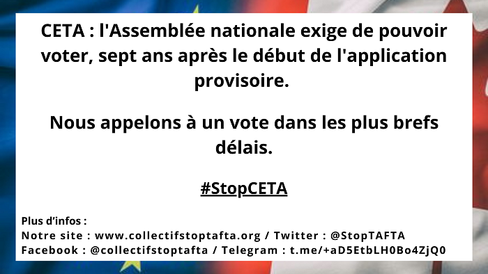 CETA : l’Assemblée nationale exige de pouvoir voter, sept ans après le début de l’application provisoire.