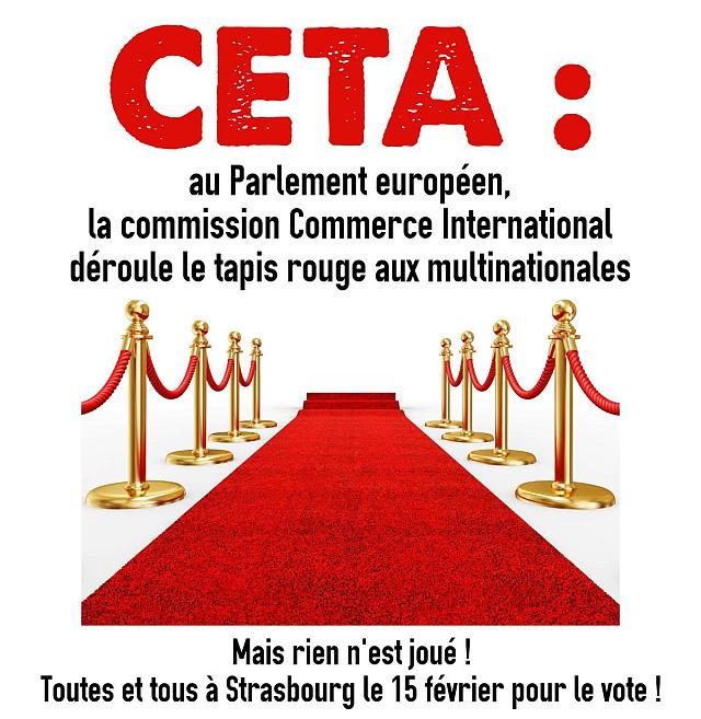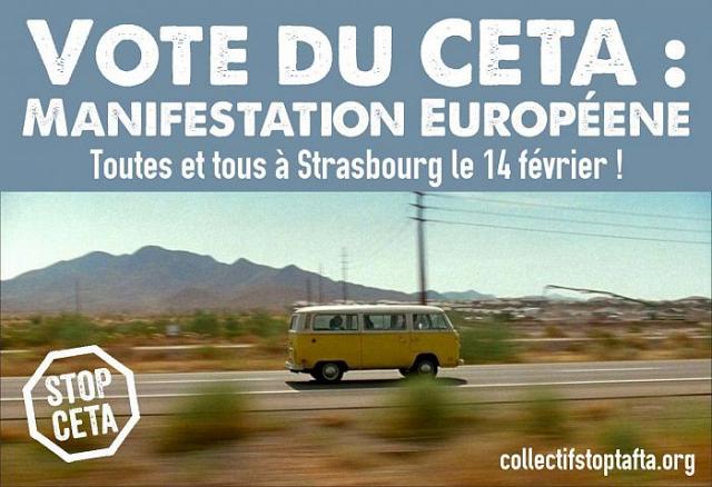 Au moment du vote du CETA le 15 février, et indépendamment de son résultat, nous serons des milliers à affluer vers Strasbourg pour faire entendre nos revendications : « Pour la justice sociale et climatique, non au traité des multinationales ! »