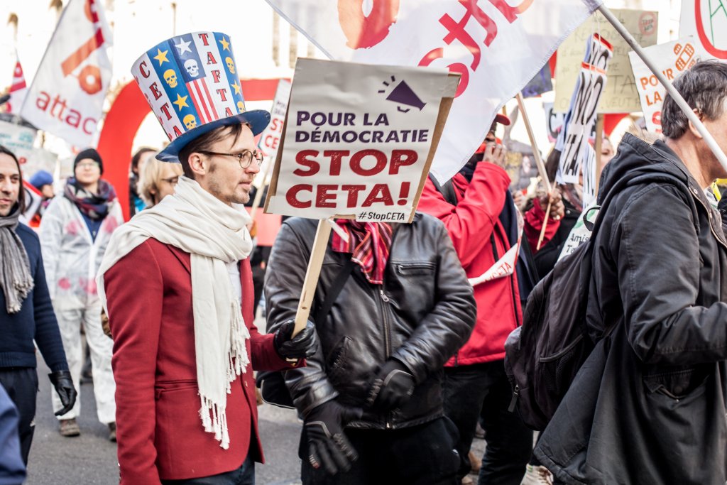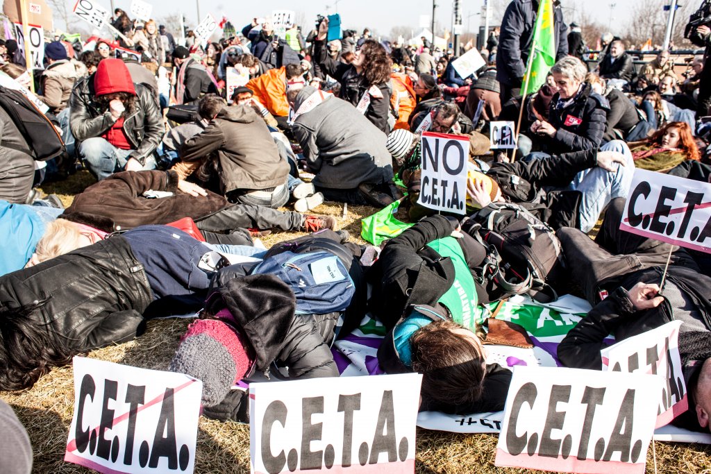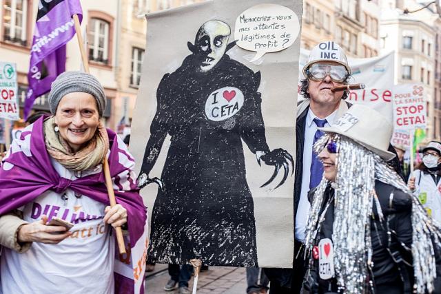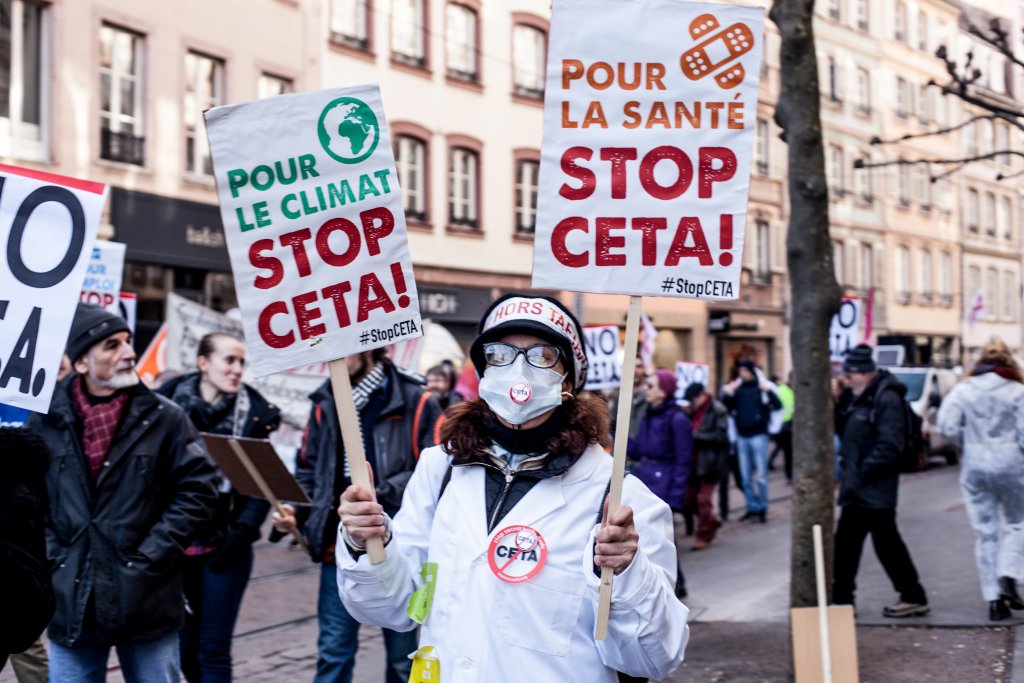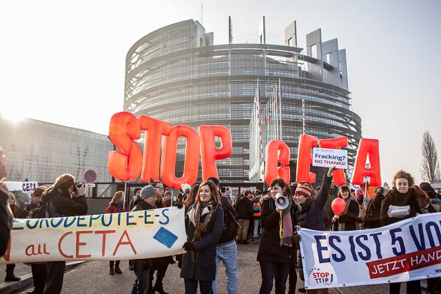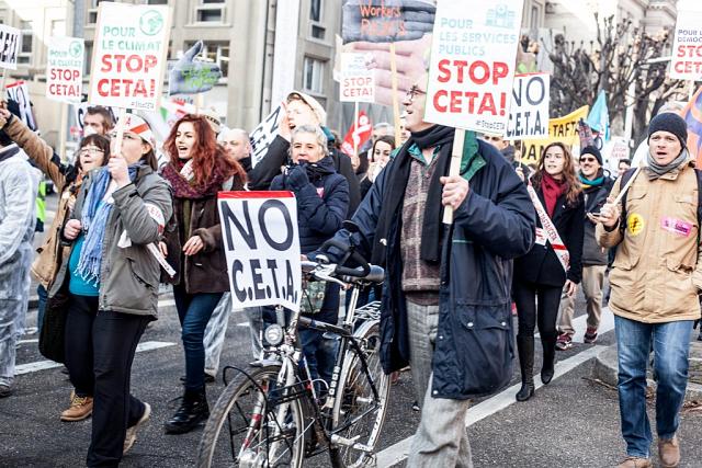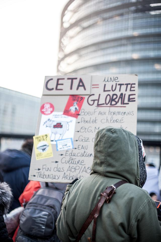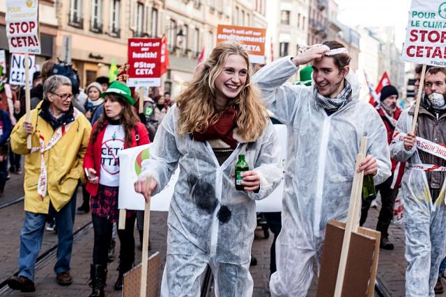 à 10h30 une manifestation s’est élancée depuis la Place Kléber (centre ville de Strasbourg) pour rejoindre le Parlement Européen à midi, au moment du vote du CETA.