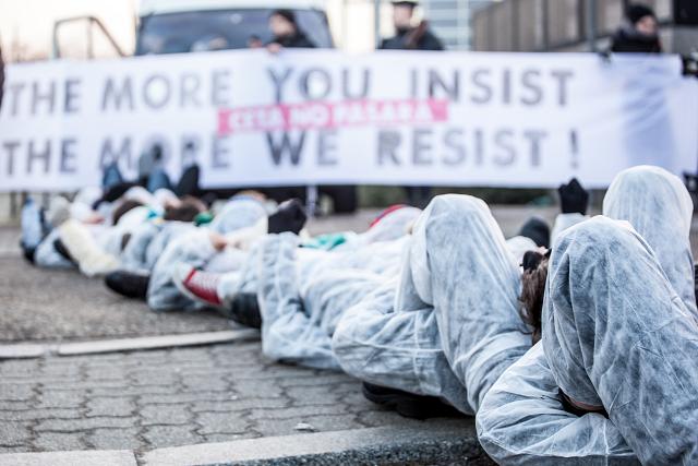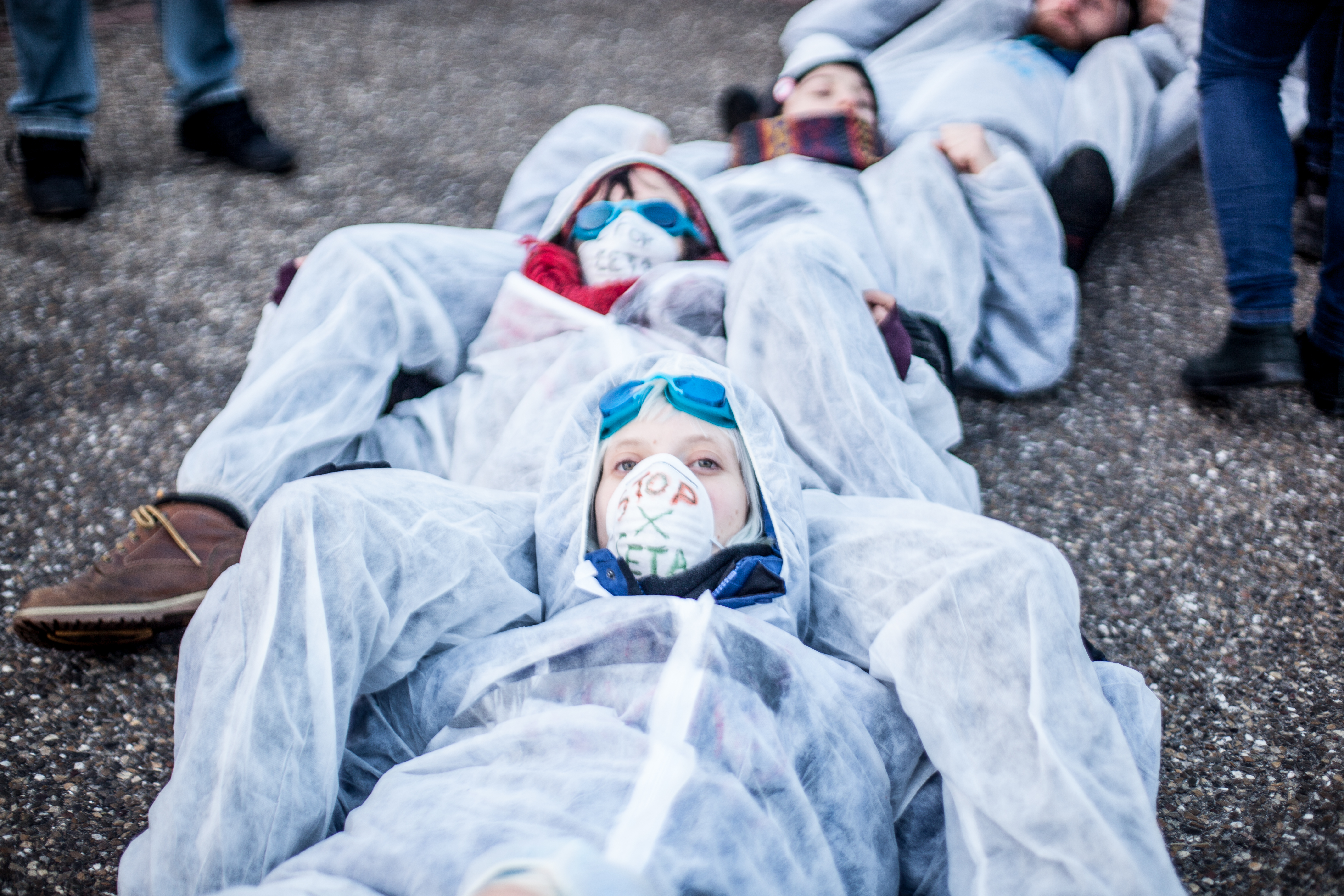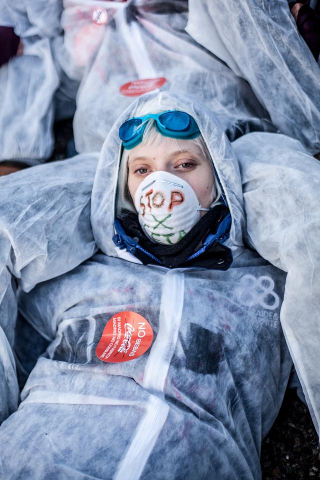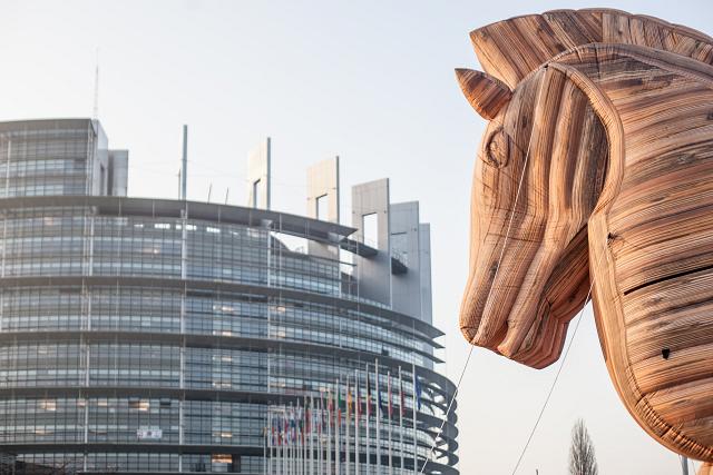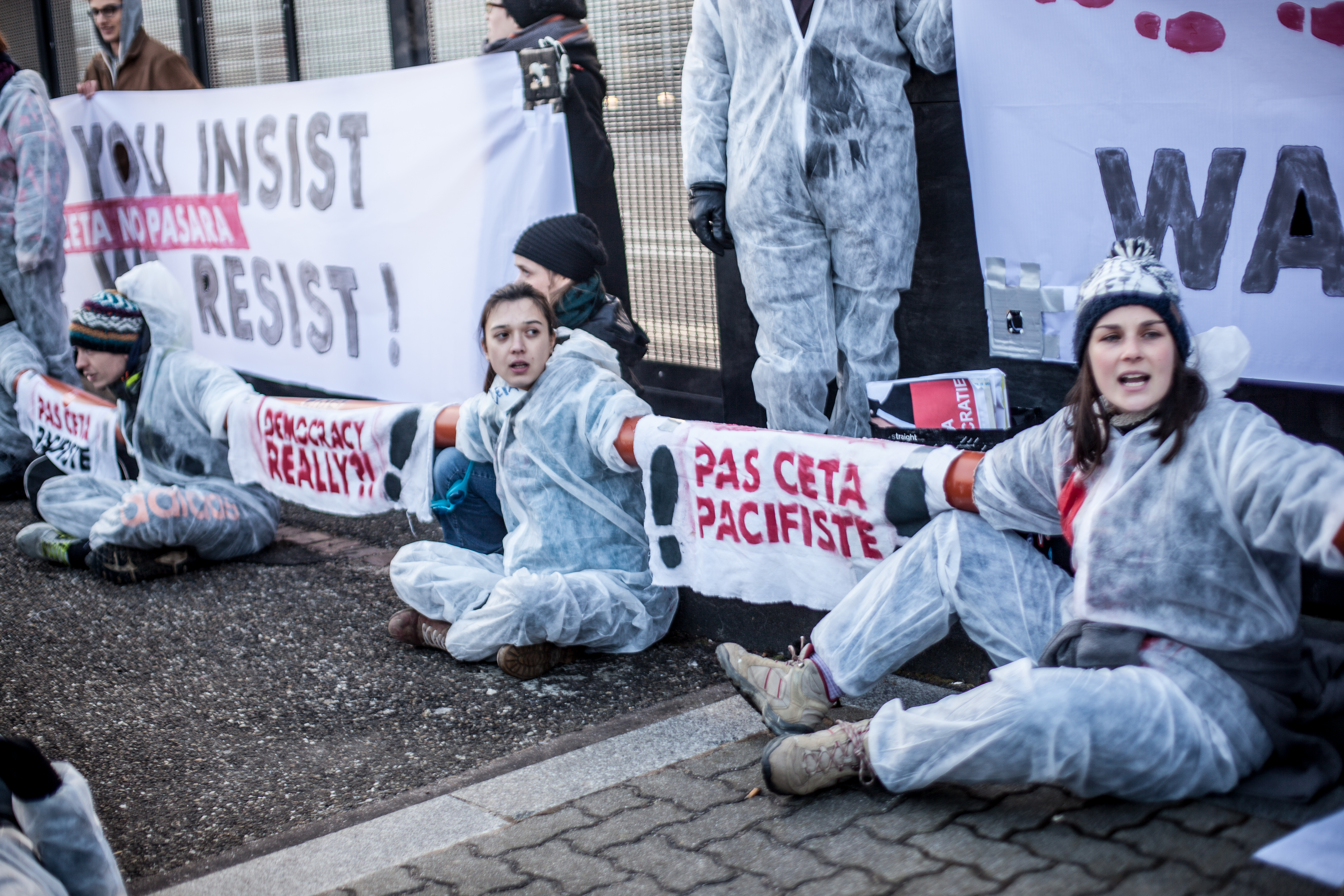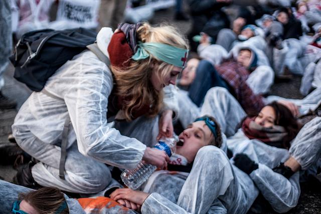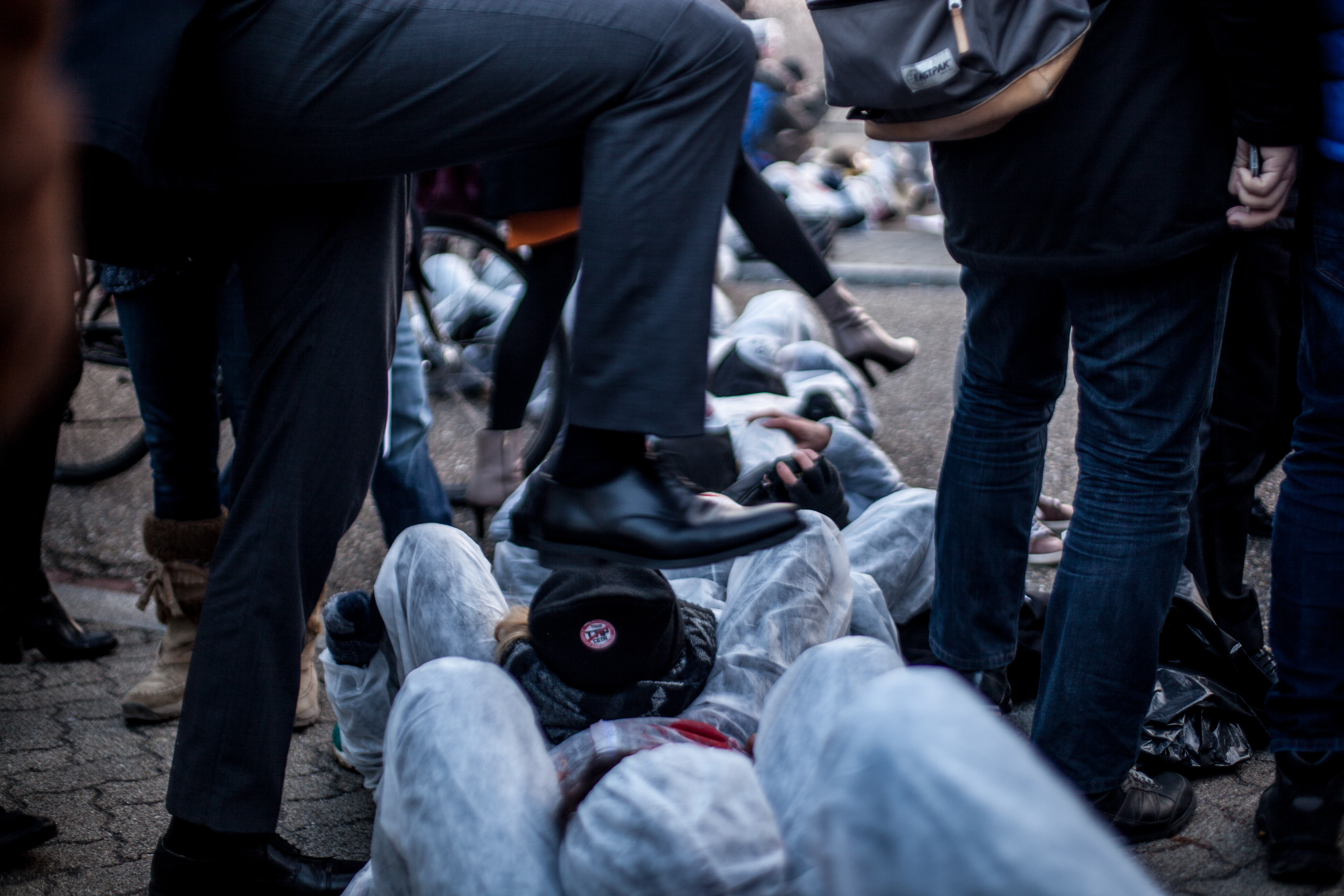 Le mercredi 15 février, dès 7h du matin, un groupe de 100 activistes se tenait à l’entrée du Parlement Européen, obligeant les parlementaires à les enjamber pour pouvoir accéder au site.