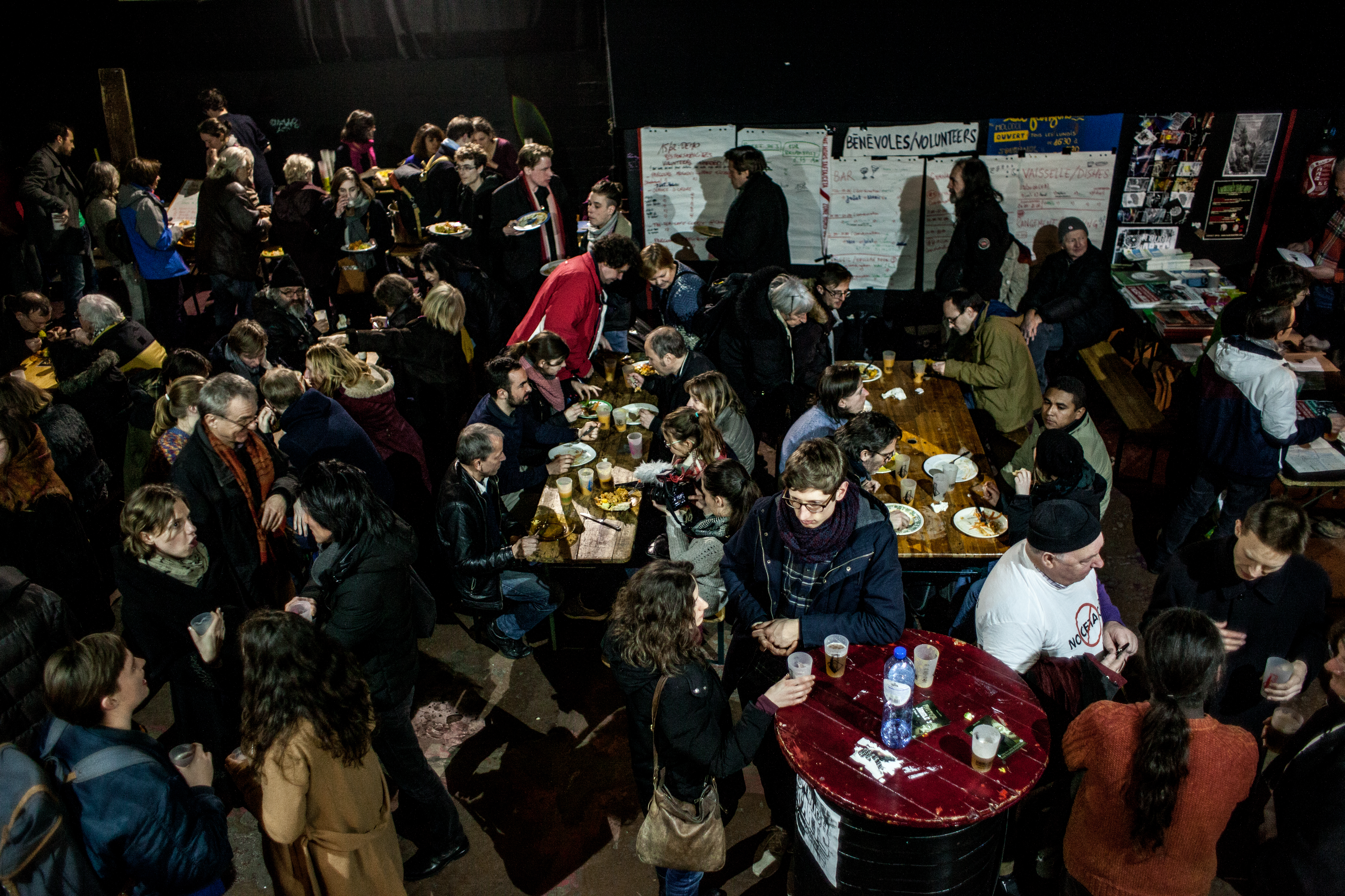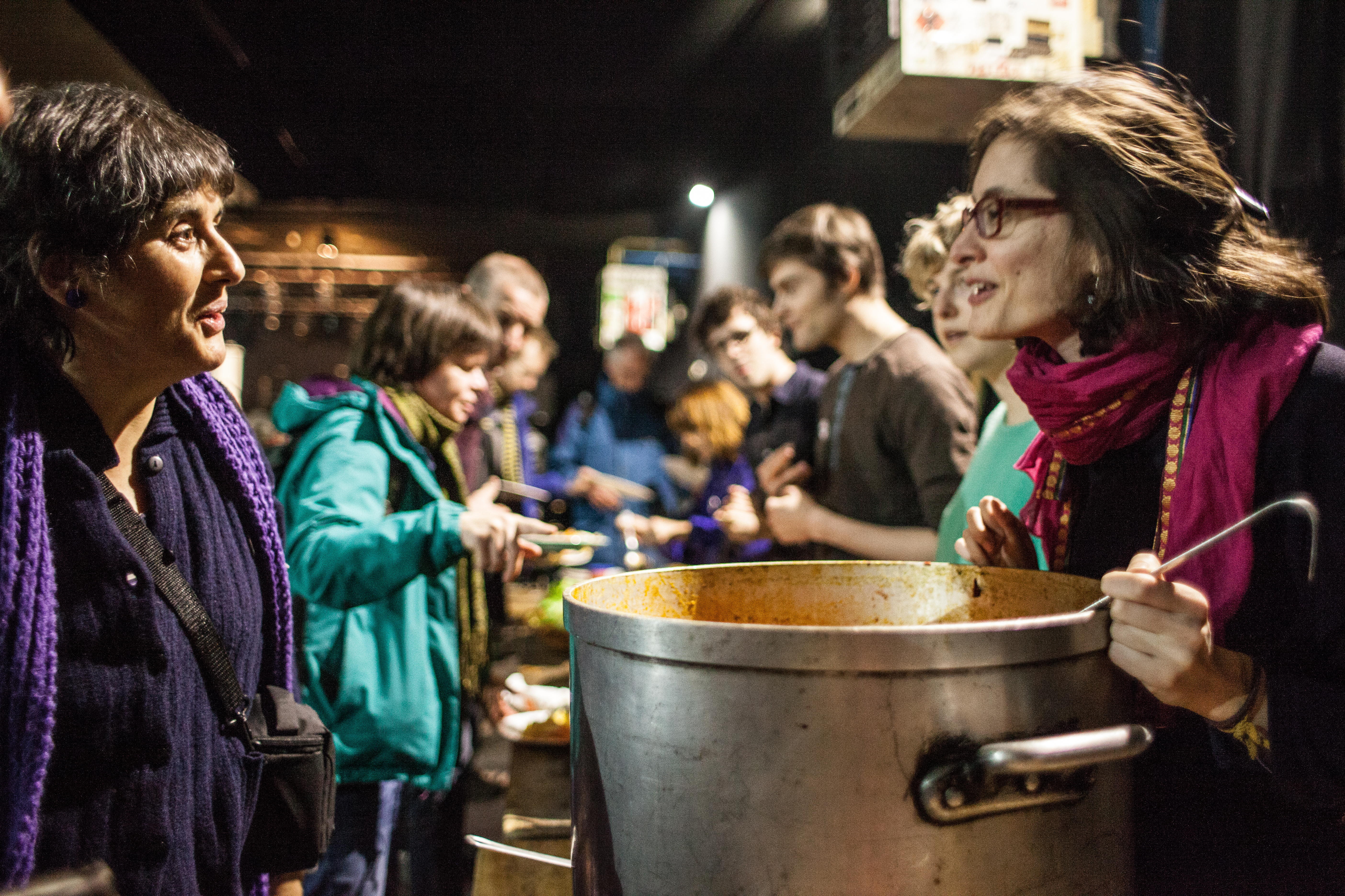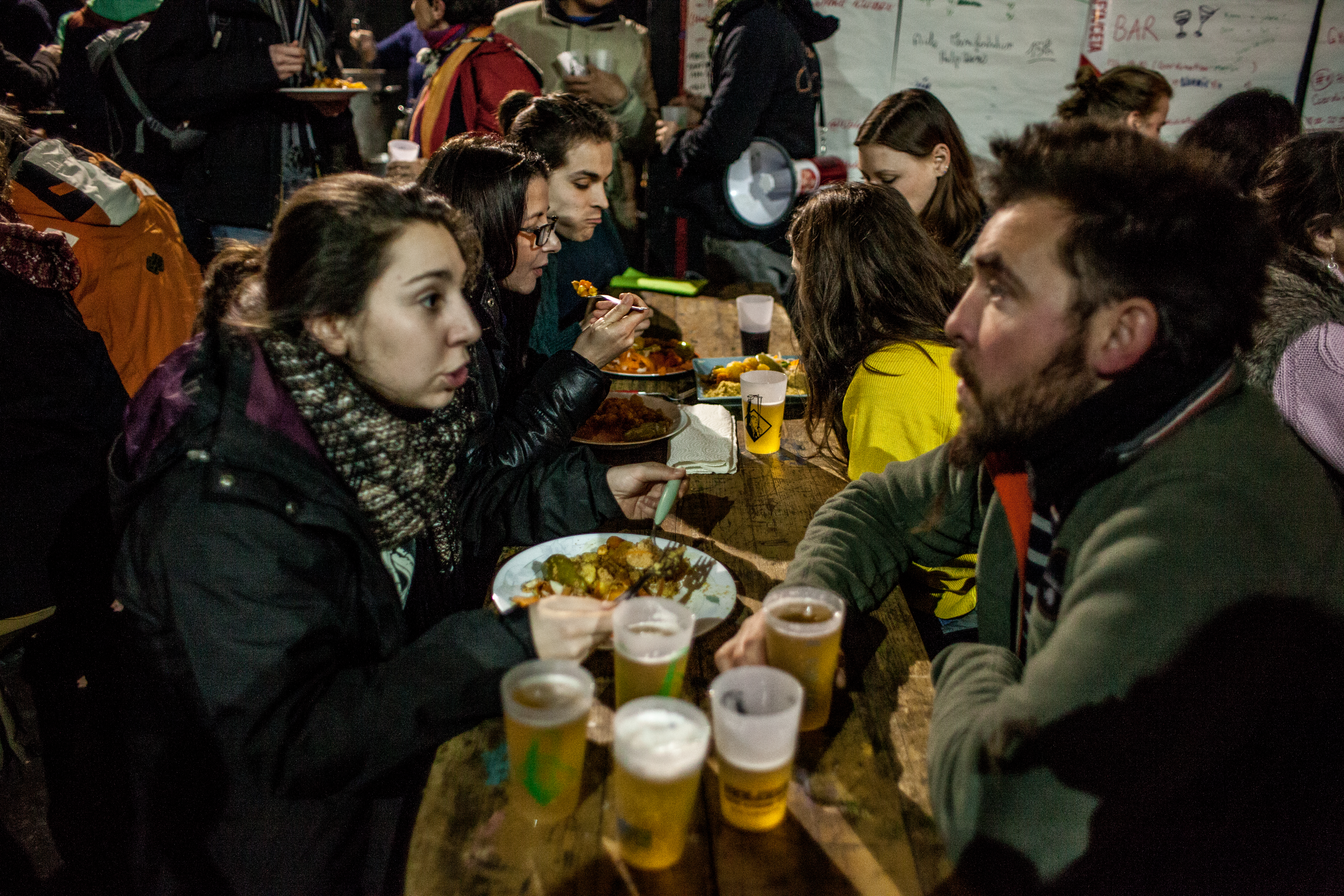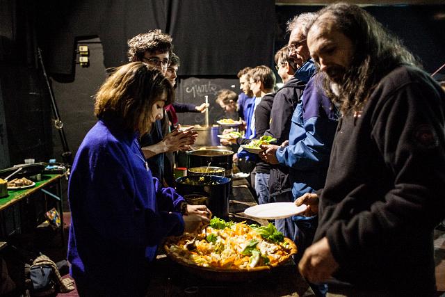 Accueil par les bénévoles et repas préparé par des militants locaux et la Confédération Paysanne locale :
