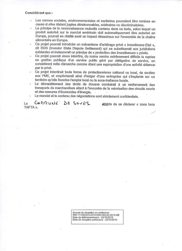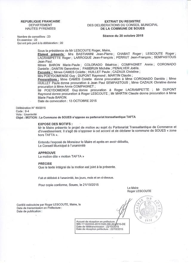 La commune de Soues décide de se déclarer << Zone hors TAFTA >›.