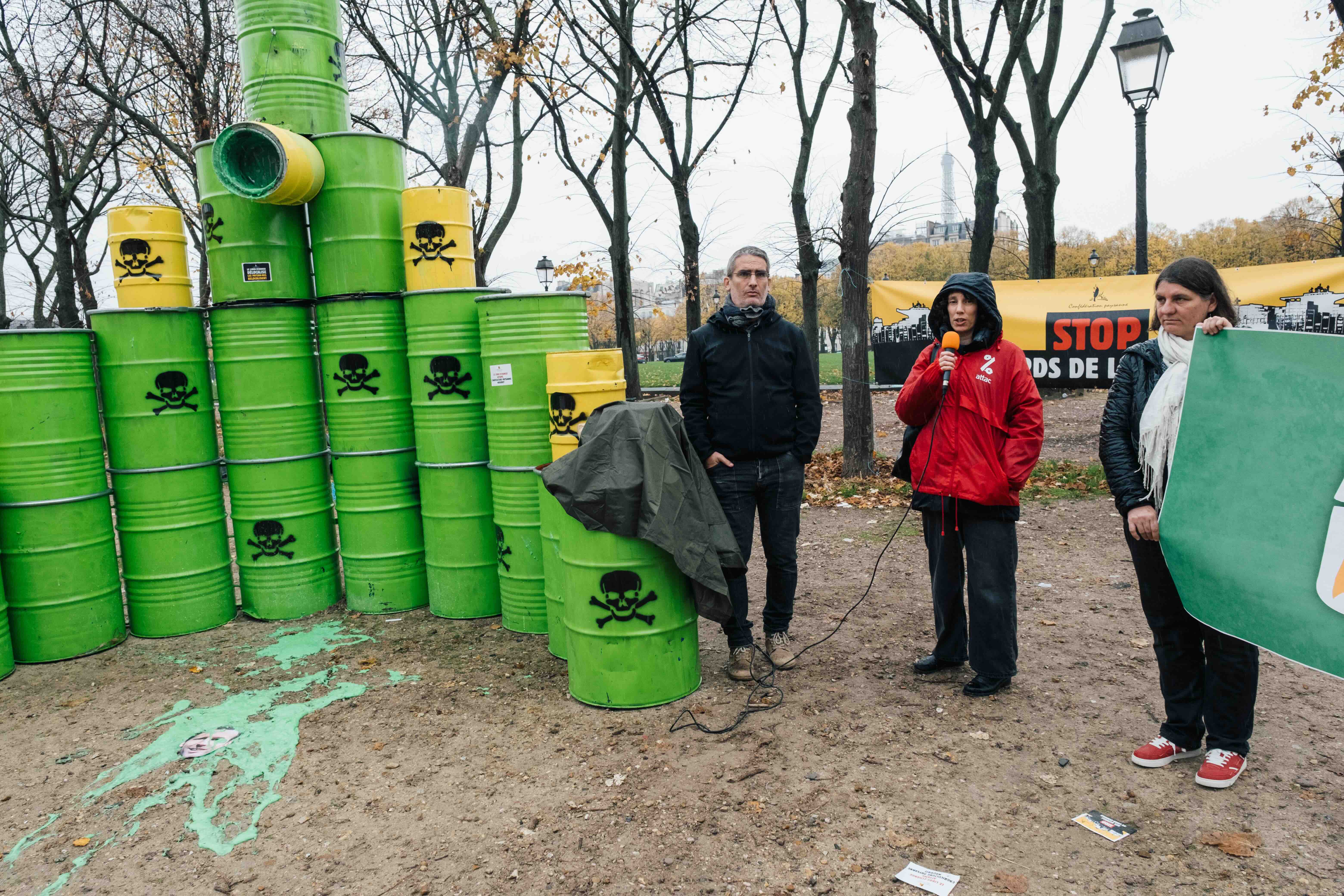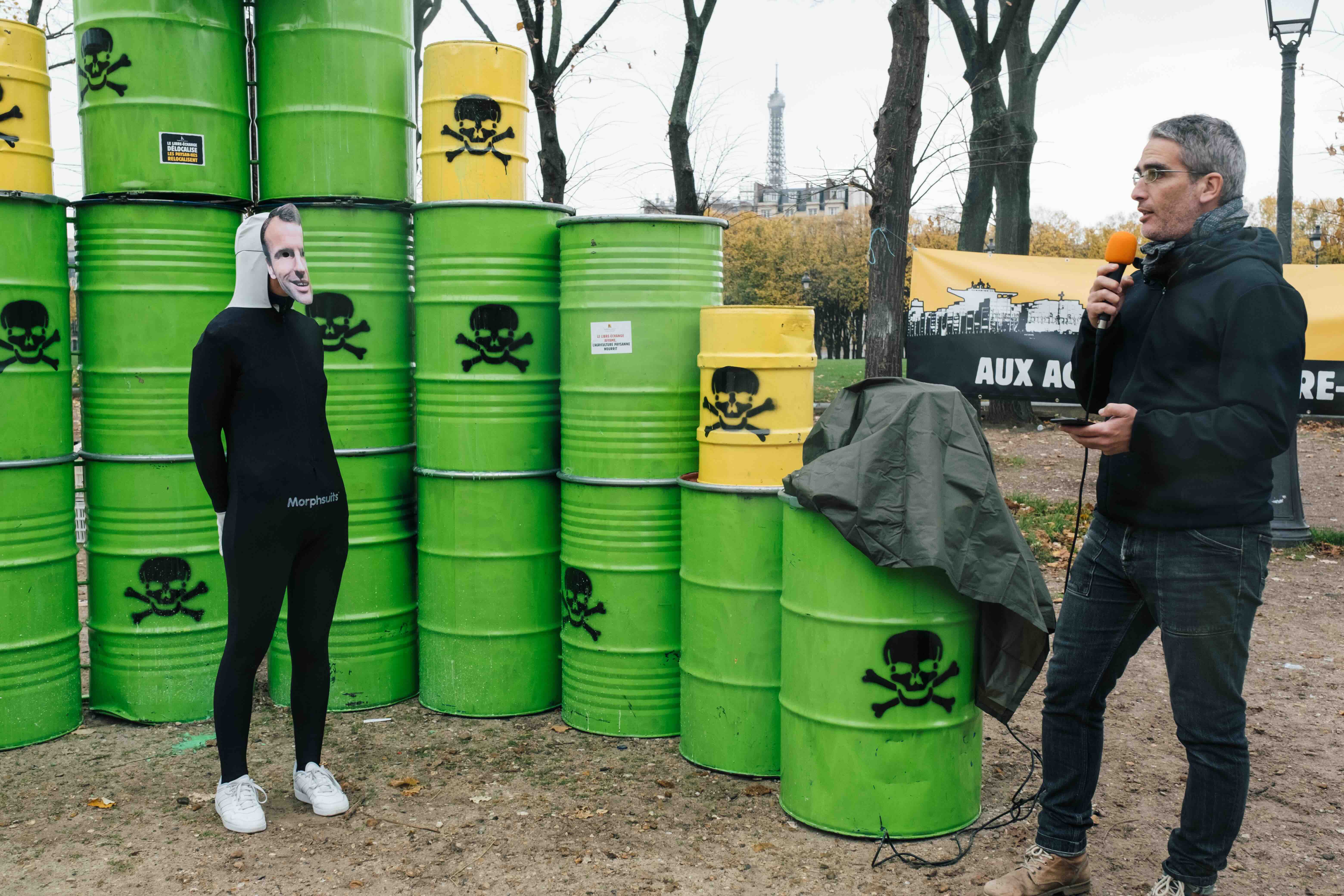 Après Vienne, Munich, Varsovie et Berlin, la caravane européenne ToxicTour était de passage à Paris ce jeudi 6 novembre : une camionnette chargée de barils de pesticides toxiques parcourt les capitales européennes pour dénoncer l’accord de libre-échange UE-Mercosur qui va accroître le commerce transatlantique de produits phytosanitaires toxiques et nocifs : comment peut-on, en 2025, continuer à exporter des pesticides vers les pays d’Amérique latine quand ils sont interdits d’utilisation en Europe ?