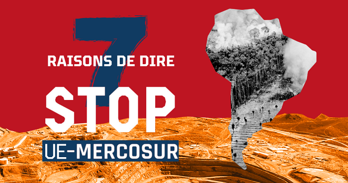 L’accord UE-Mercosur n’est toujours pas mort. Des négociations de haut-niveau ont même repris pour tenter à nouveau de le ressusciter. Avec plusieurs partenaires européens, nous publions donc une courte brochure « Les 7 raisons de STOP à l’accord de libre-échange UE-MERCOSUR ». A télécharger ici et à utiliser sans modération.