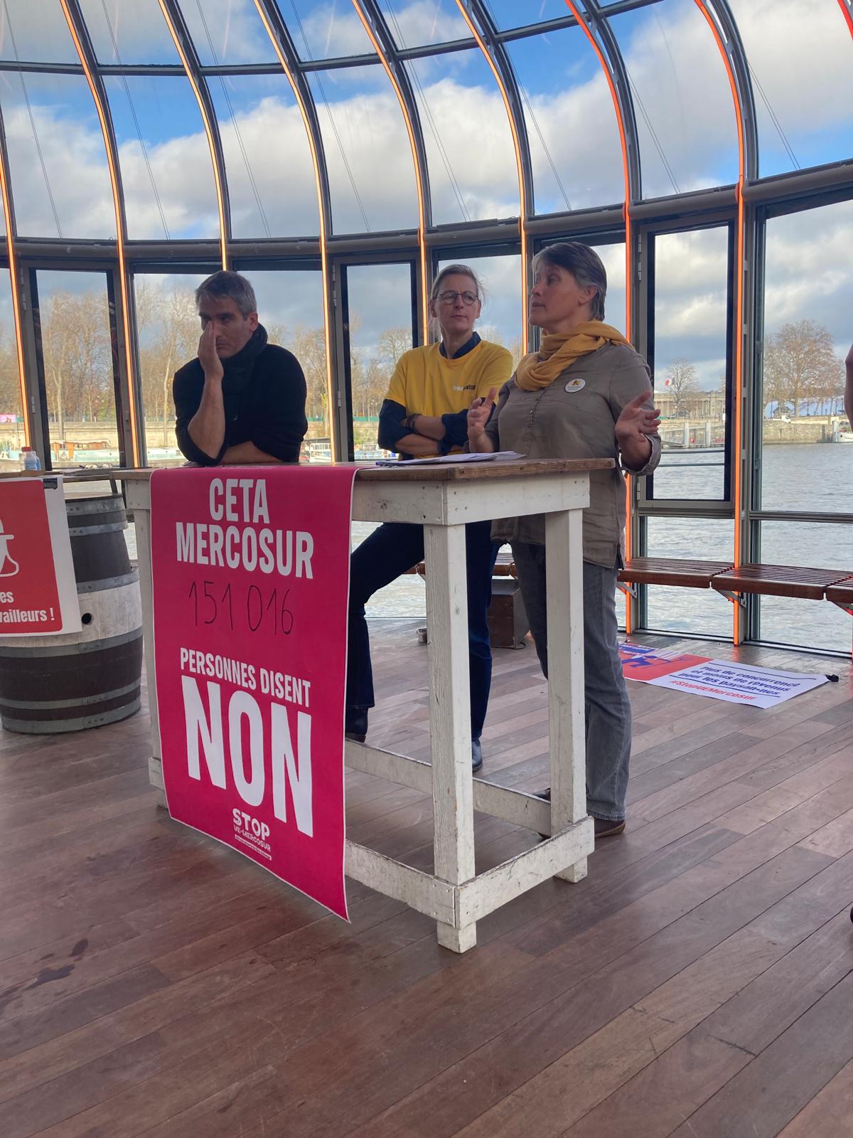 De son côté Laurence Marandola, porte-parole de la Confédération Paysanne, rappelle pourquoi son organisation est historiquement contre tous les accords de libre-échange qui sapent le revenu des paysans au profit de l’agroindustrie et des intermédiaires qui exportent / importent.