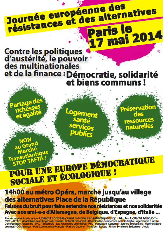 17 mai : journée européenne de mobilisation contre le grand marché transatlantique (TAFTA), pour des alternatives à l’austérité