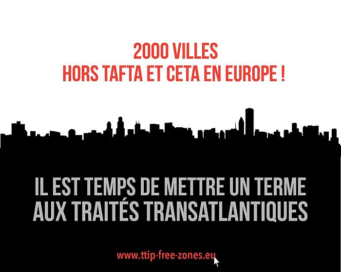 Dans toute l’Europe, des villes et des régions telles qu’Amsterdam, Cologne, Édimbourg, Grenoble, Barcelone, Milan, Vienne, Thessalonique entre autres, ont manifesté leur refus de voir ces traités être appliqués. Elles dénoncent le manque criant de transparence des négociations et demandent que les collectivités territoriales puissent y avoir une place aux côtés des États. En déclarant leurs communes, départements et régions hors CETA et TAFTA, les élus locaux affirment leur résolution à porter la voix des citoyens qui les ont élus auprès de la Commission européenne et de leurs gouvernements. Ces prises de positions matérialisent la volonté des élus locaux de défendre les citoyens de leur territoire et les institutions démocratiques comme des espaces de débat et de prise de décision en faveur de l’intérêt général. [1]