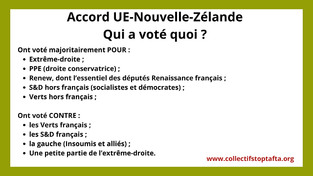 - Déclaration de 50 organisations de la société civile appelant à voter contre l’Accord UE-Nouvelle-Zélande : ici en .pdf
