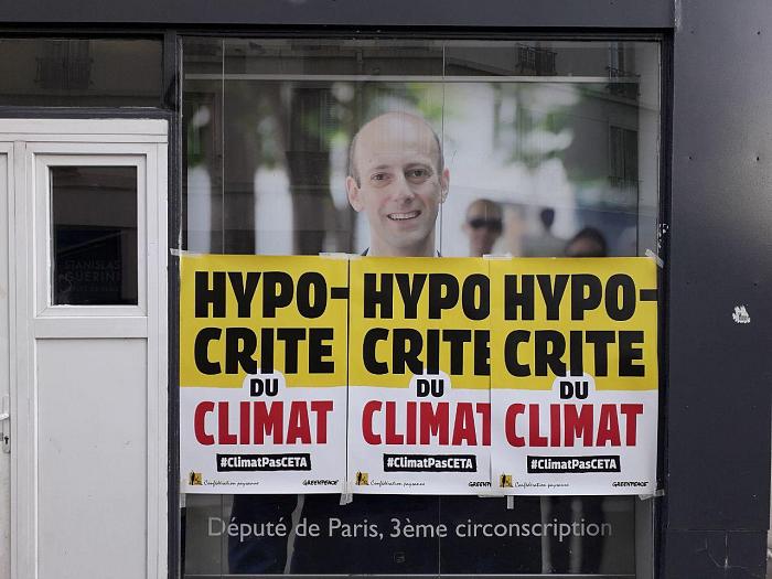 Ce 23 juillet, des militant.e.s de Greenpeace France, de la Confédération Paysanne et d’Attac France ont recouvert les permanences des députés ayant voté en faveur du CETA avec des affiches « Hypocrite du climat » et « CETA ou climat, vous avez (mal) choisi ». Ici quelques photos pour les villes de Paris, Marseille,Metz, Lyon, Le Mans, Nantes, Nice, Annecy, etc