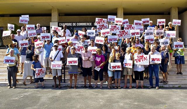 Le collectif STOP TAFTA Pays Basque passe à l’action ! lundi 15 septembre 2014 Action du collectif STOP TAFTA Pays Basque samedi 13 septembre 2014 devant la CCI de Bayonne