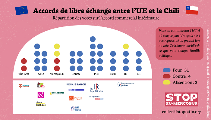 Plus de 80% des députés UE de la Commission INTA du Parlement européen ont approuvé les accords UE-Chili & UE-Kenya au Parlement UE ce mercredi 24 janvier :