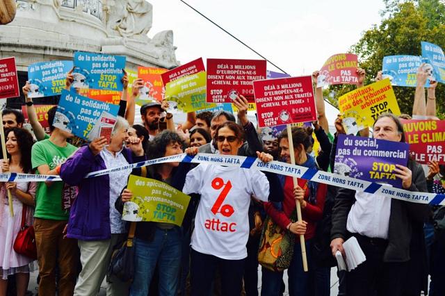 Dans le cadre de la journée mondiale de mobilisation du 25 septembre contre l’accord de libre-échange UE-Canada (CETA), le Collectif Stop TAFTA a organisé une action d’interpellation et d’information Place de la République à Paris.