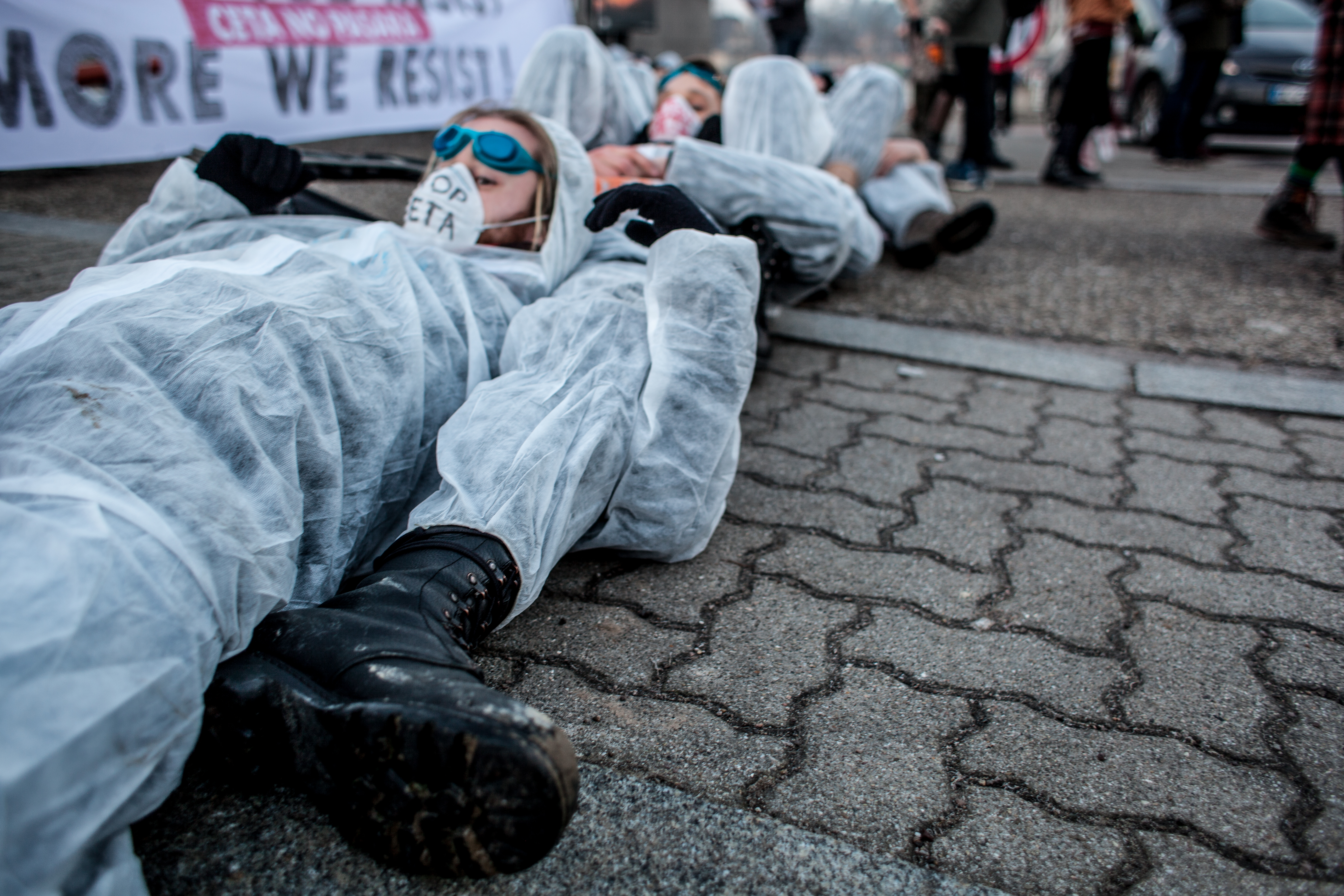 Le mercredi 15 février, dès 7h du matin, un groupe de 100 activistes se tenait à l’entrée du Parlement Européen, obligeant les parlementaires à les enjamber pour pouvoir accéder au site.