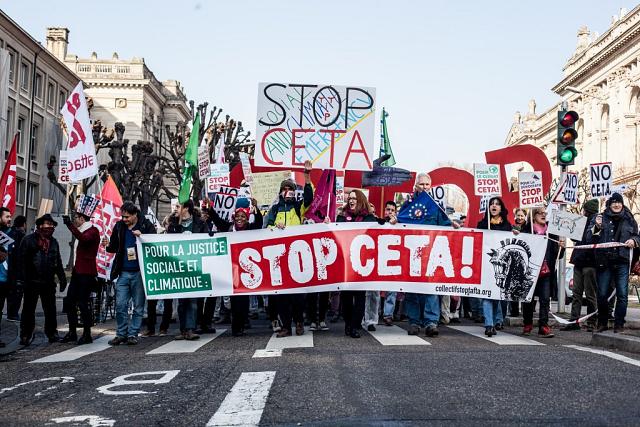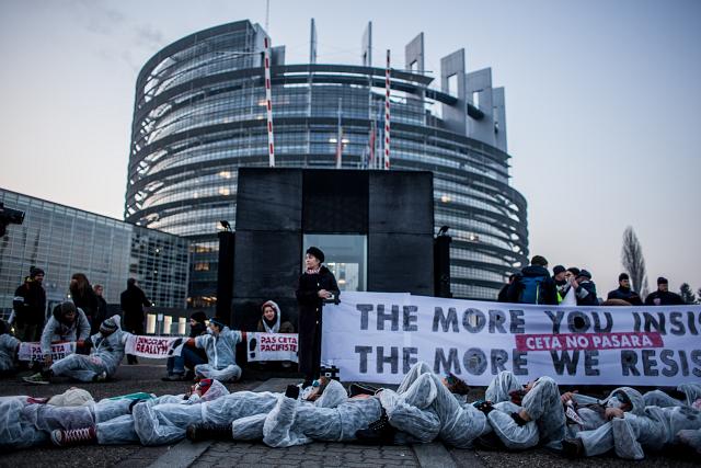 à 10h30 une manifestation s’est élancée depuis la Place Kléber (centre ville de Strasbourg) pour rejoindre le Parlement Européen à midi, au moment du vote du CETA.