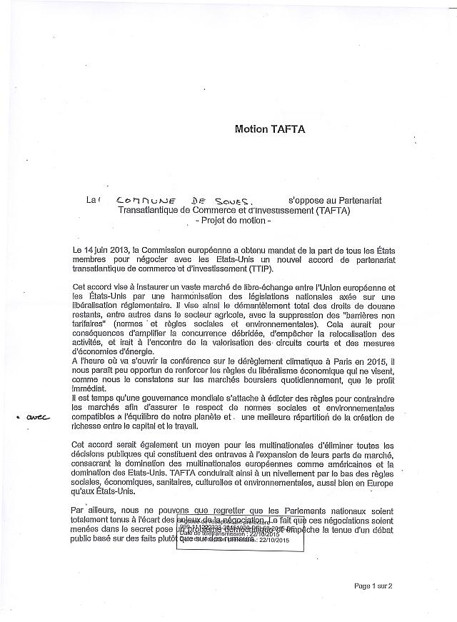 La commune de Soues décide de se déclarer << Zone hors TAFTA >›.