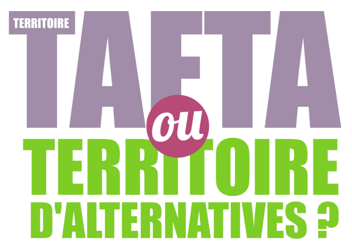 Produite par l’Aitec, cette infographie est double. Elle anticipe d’une part les conséquences sociales, économiques et environnementales du traité transatlantique UE-USA (TAFTA) sur une commune française ordinaire de 3 000 habitants. Elle expose d’autre part un visage alternatif de cette même ville, transformée, dans un futur proche, par ses politiques pionnières de transition sociale et écologique.
