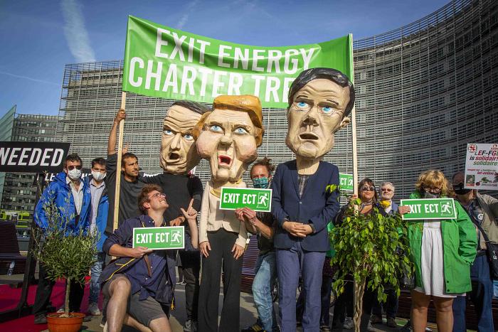 Ce mardi 28 septembre, des actions symboliques ont été organisées par des organisations de la société civile dans plusieurs capitales européennes (5), comme à Bruxelles (Belgique) et à Vienne (Autriche), quelques jours à peine après des marches pour le climat au cours desquelles des militants ont défilé avec des banderoles demandant le retrait du TCE (6).