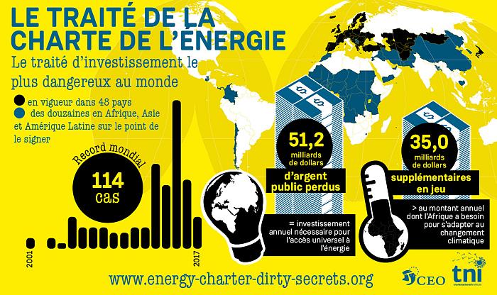 Dans cette lettre, les 19 organisations de la société civile accusent ce Traité de protéger les intérêts de l’industrie des multinationales de l’énergie, notamment celles des énergies fossiles, et donc d’aller à l’encontre des objectifs de lutte contre les dérèglements climatiques. La Commission a obtenu du Conseil en juillet dernier un mandat de renégociation du Traité et des négociations visant à le « moderniser » pourraient débuter en décembre. Pour les ONG signataires, abandonner ce traité si déséquilibré est une voie plus sûre et efficace que la modernisation d’un Traité suranné qui va prendre des années.